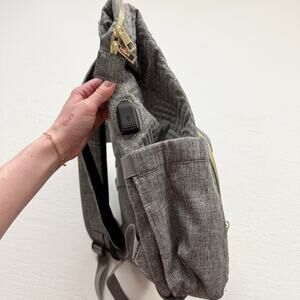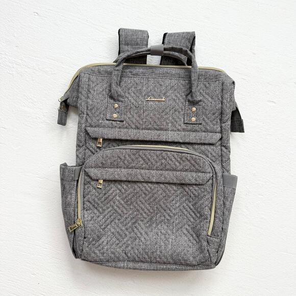 Brand new quilted gray backpack by Lovevook featuring a structured top-opening design and multiple compartments for organized storage. Includes built-in USB port for on-the-go charging and comfortable padded straps. Sleek, practical, and perfect for work, travel, or everyday use.
