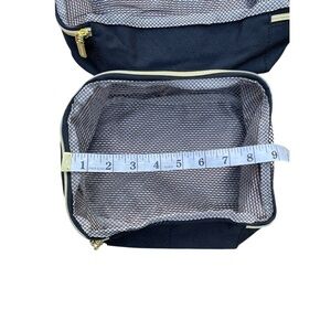 Organize your travel essentials with this classic navy mesh toiletry bag. Ideal for keeping your items secure and accessible.
