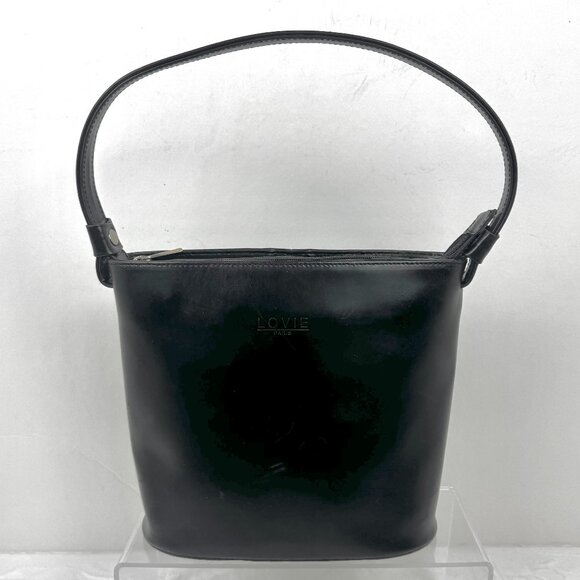 Lovie Paris Black Leather Small Shoulder Bag Purse Zip Closure Y2K Vintage Made