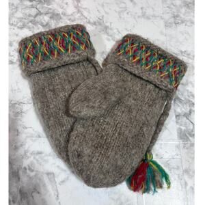 Hand-knitted Lovikka Sweden Made Wool Tan Gray Thick Mittens Bohemian Cottagecore Winter Warm Cozy Unisex.