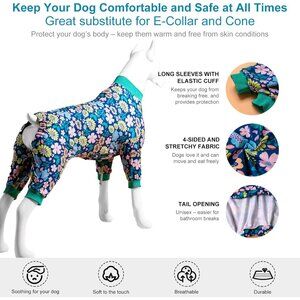 * Helper for Dogs to Recovery: This dog onesie alternatives to recovery suits or dog cones or a combination with large dog cones.This dogs pajamas allow dogs to move and eat freely,yThis puppy will fell homey and won’t be annoyed.
