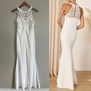 Loving Destiny White Lace Halter Mermaid Maxi Dress