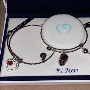 Set of 3 expandable bracelets. Silver tone with ruby like crystals, #1 Mom pendant. In Excellent condition. Perfect gift for loved one