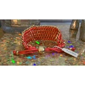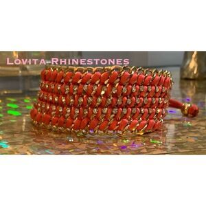 Lovita rhinestone encrusted salmon color bracelet expands 12in retracts 6in