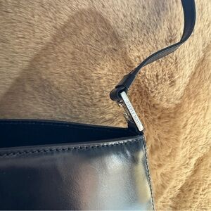 Low Classic Logo Embossed Shoulder Bag in Polished Black.
