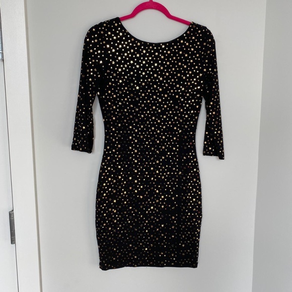 Low Cut Back Dress Gold star printed Used only once, like new Bought from Istanbul, Turkey Size is M