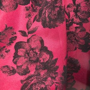 Beautiful Red Dress with Velvet Black Flowers. Low Cut Neckline and Strappy Back. Only Worn Once!