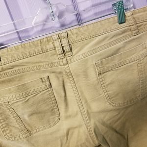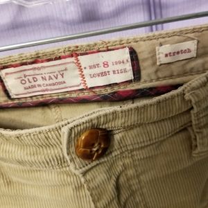 Khaki/tan color, good condition. Old Navy Stretch. Says size 8 on the tag but fits a lot like a size 10. 30" inseam, 8.5" rise and 36 inch waist. Boot cut.