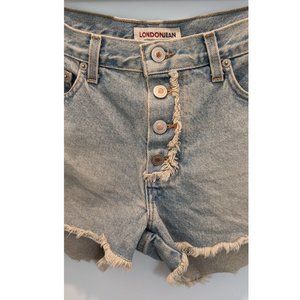 LondonJean Denim Shorts - Low rise, light wash, multi button