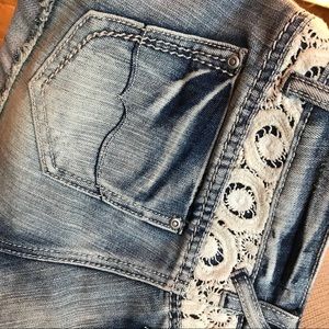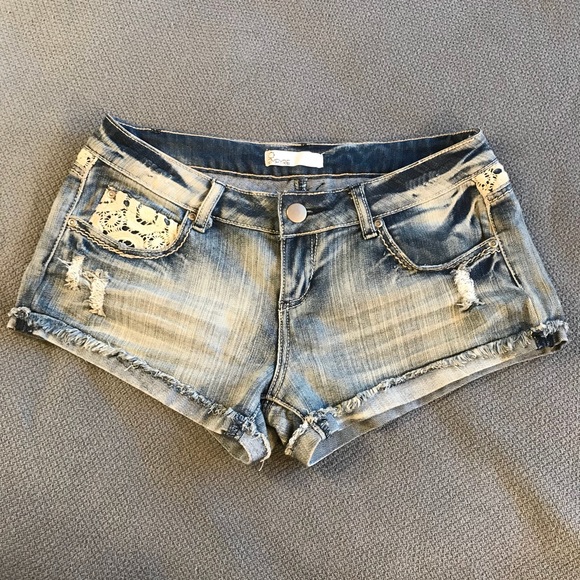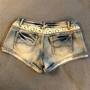 Cute jean shorts with lace detail, excellent like new condition!