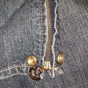 100% Cotton Low Rise Jean with Gold Detail and Small Original Patchwork Design