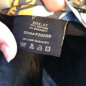 Cute dark washed low rise jeans. Seem to be from the 90s. Good condition, no flaws or stains. There is fraying at the bottom but I think that is how they are supposed to look. They are either boot cut or flare jeans.