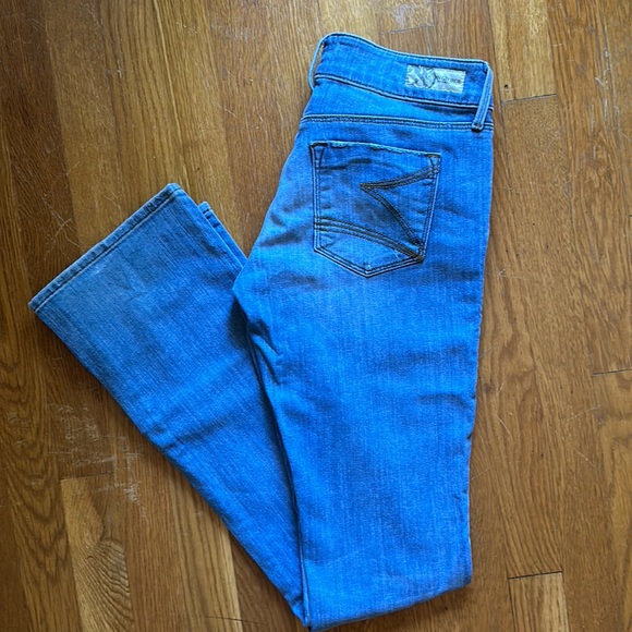 Perfect condition light blue denim flared low rise jeans from Dylan George. Size 28. Would fit a 5-6 slim.