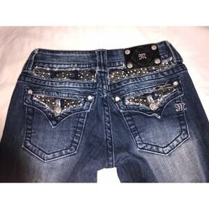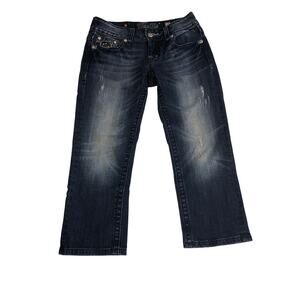 Low Rise Jeans Miss Me Capri Size 27 Blue Crystal Bling Distressed Styl JP6085P