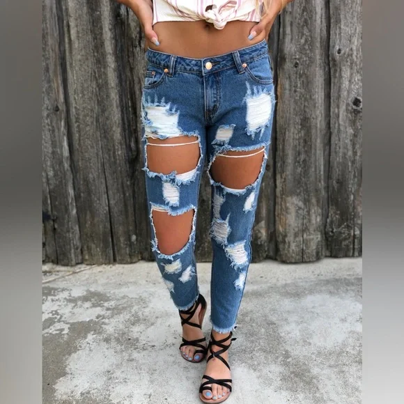 Low Rise Ripped Jeans