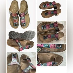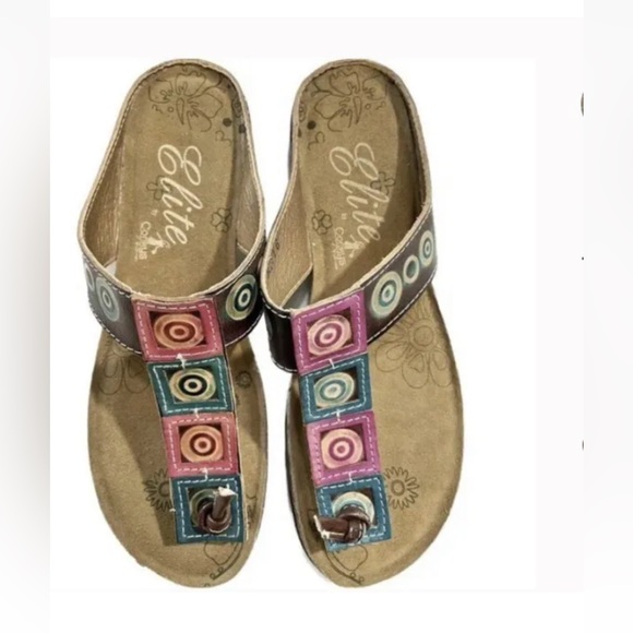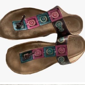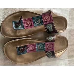 Leather multicolor Thong Sandles Boho style used still good condition need cleaning sold as is