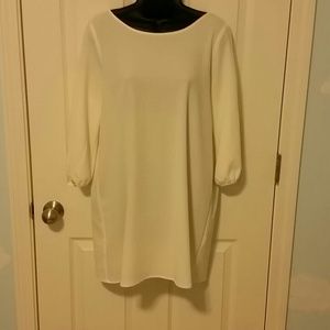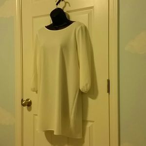 White dress with bow on the back. Loose fitting but super cute. Low cut on the back. Fits small to large. Great condition!