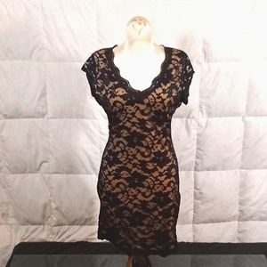 Black and Gold mini contouring to the body sporting a low cut v-neck with out the sleeves... SEXY!