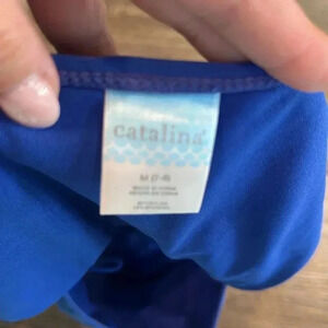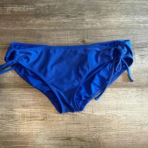 Vibrant blue size medium has ties on each hip waist measurement lane flack 15 inches
