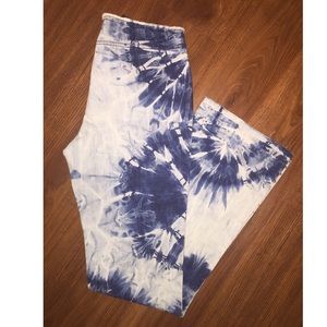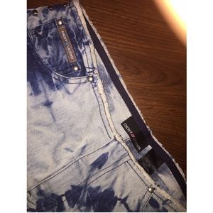 Low rise studded jeans by DKNY. Tie-dye design. Studs start from hip and end at the bottom of the leg. This jeans have an amazing design and fit amazingly!