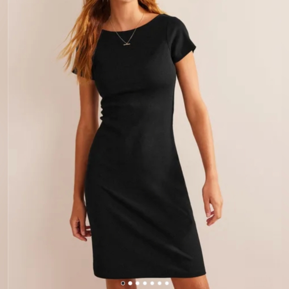 The ribbed finish on this stretch-jersey dress keeps the fitted shape comfortable. It's finished with a scoop back to create a modern shape.
