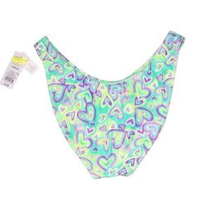 Low-Rise Cheeky Ultra High Leg Bikini Bottom - Wild Fable Green Blue Heart XXS