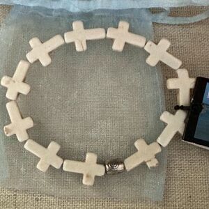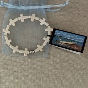 Low Tide Island Bracelet Wjute Cross design Bracelet with silver nead NWT. Elastic has a little stretch. This company sells products made by persons with disabilites.