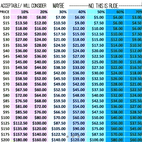 Im willing to move around on price, but im not desperate to sell my items. Please be respectful when making offers, and understand that poshmark does take out a chunk of money for each sale :)