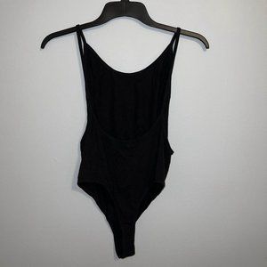 This bodysuit is low-cut on the sides and has an open back. It is a size medium and has never been worn before but has no tags.