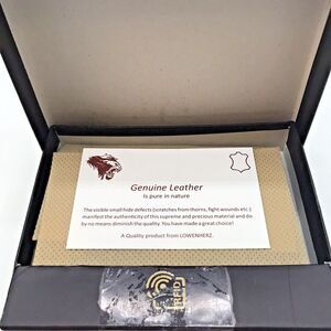 NEW Lowenherz Black Leather Wallet. Slim & Compact, Front Pocket, RFID Blocking, Minimalist Card Wallet. Slots for Credit Cards, ID & Currency. Metal Money Clip inside, Exterior Slide, and comes with Original Gift Box. Handcrafted in India.