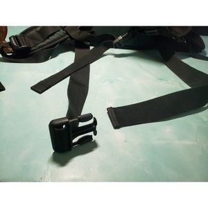 Dirty and has a small hole. Missing the buckle for the bottom waist belt. Easy find on Amaz0n.