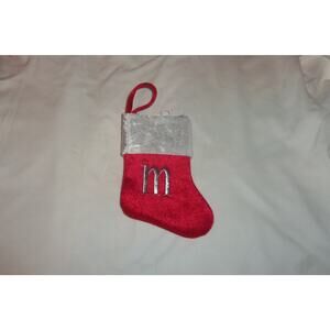 Lower case "m". Hang this traditional red classic mini Christmas stocking with white thread monogram of lower case letter "m". Measures 8" tall by 6" wide made by Merry Brite. I DO NOT MAKE THESE, WHAT I HAVE LISTED IS ALL I HAVE! NO CUSTOMIZATION OF OTHER LETTERS!