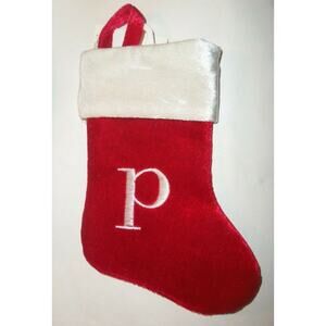 Hang this traditional red classic mini Christmas stocking with white thread monogram of lower case letter "p". Measures 8" tall by 6" wide made by Merry Brite. I DO NOT MAKE THESE, WHAT I HAVE LISTED IS ALL I HAVE! NO CUSTOMIZATION OF OTHER LETTERS!