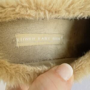Vintage Lower East Side platform mules in tan suede with plush faux-fur trim and chunky rubber sole. Slip-on, round toe, cozy 90s/Y2K vibe. Women’s 7. Light wear; see photos. Clean and ready to ship.