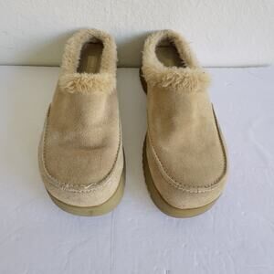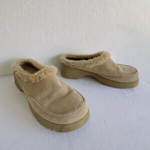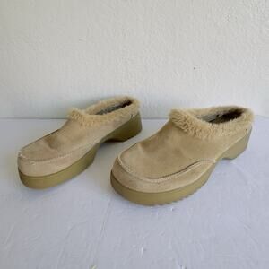 Lower East Side Suede Faux-Fur platform Mules Clogs Tan Women’s 7 Y2K 90s