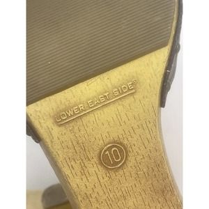 Gorgeous pair of vintage heels from Lower East Side. These are a slip on heel with faux leather strap and buckle detail. The sole is a composite which looks like wood. Size 10. Amazing condition with no major flaws to mention.