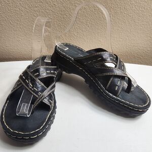 Lower East Side Vintage Y2K Black Chunky Vegan Leather Slides-Size 8.5