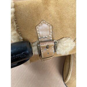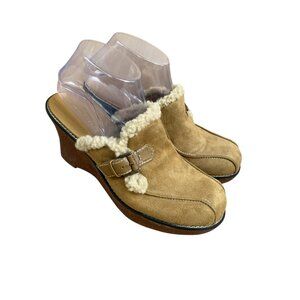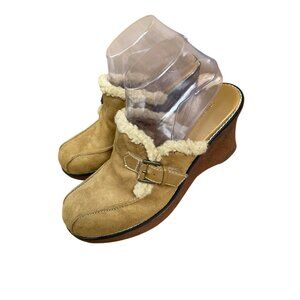 Lower East Side Y2K Brown Faux Suede Shearling Buckle Clogs Size 8.5 Wedge 90s