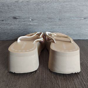 Lower East Side Vintage 90s Tan Floral Beaded Platform Sandal 7.5