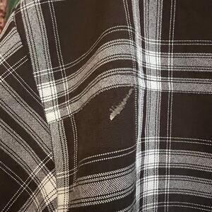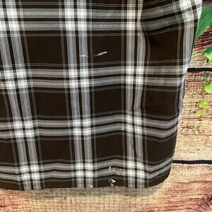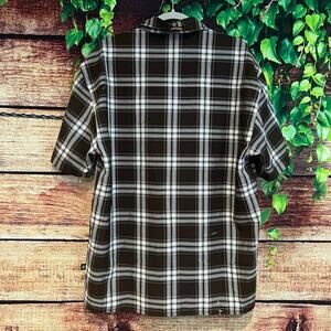 Lowrider Original Shirt Large XL Brown White Plaid Striped Short Sleeve Button Up