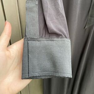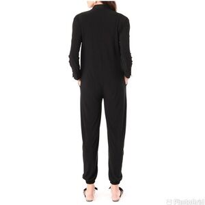 Tapered legs with elastic cuffs and three-quarter sleeves style a chic and sophisticated jumpsuit in a bump-friendly fit.