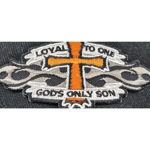 The Loyal To One Gods Only Son Mega Cap Strapback Cap Hat in orange and black is a stylish and religious-themed baseball cap designed for men. The adjustable strap ensures a comfortable fit for all wearers. The bold logo pattern and color combination make this cap a standout accessory for those who proudly profess their faith. Made by Mega Cap, this one size fits all hat is a versatile and meaningful addition to any man's wardrobe.