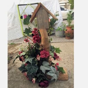 Large Rustic Driftwood Birdhouse Floral Arrangement