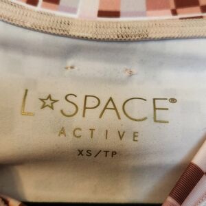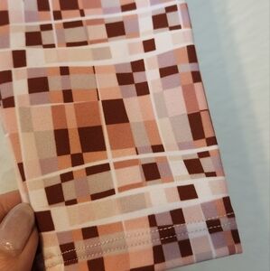 Cropped long sleeve top with geometric patterns.Swim/scuba material, no flaws.