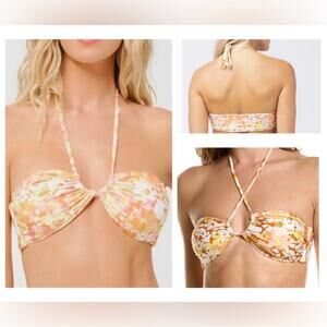 L*Space Dawn Floral Convertible Bikini Top What in Carnation XS New