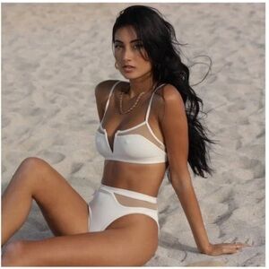 L*space Palonia Bitsy High Waist Bikini Bottom in Cream size Small