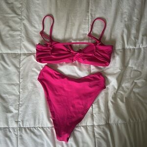 L*space ringo Bougainvillea bikini, hot pink, twisted knot detail in top and bottoms, cheeky high waisted bottoms, good condition, adjustable bikini straps. Top originally $110 and bottoms originally $99, selling together