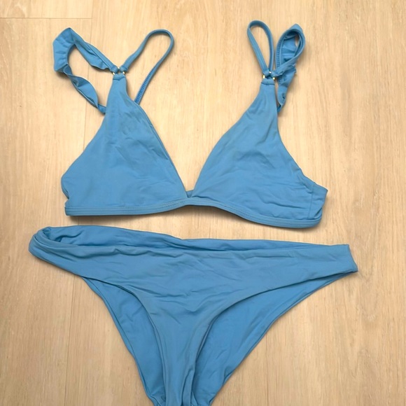 Light blue top is adjustable straps bottom is style sandy