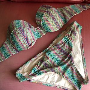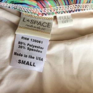 Lspace two piece multicolor swimsuit size small in both pieces with full bottom cut on bottoms let me know if you need more photos