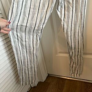 L*space Sadie Jumpsuit in Summer Nights Stripe size small. White with woven dark navy vertical stripe. Tie back straps with low back, side pockets, and side zip closure. Super lightweight, breezy material. Perfect for a beach vacation or even just a warm day! In excellent condition.